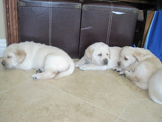 Victoria, Catherine and James pose for a picture with all the puppies, except Lily (she was by me) before we get Henry to take him home. |